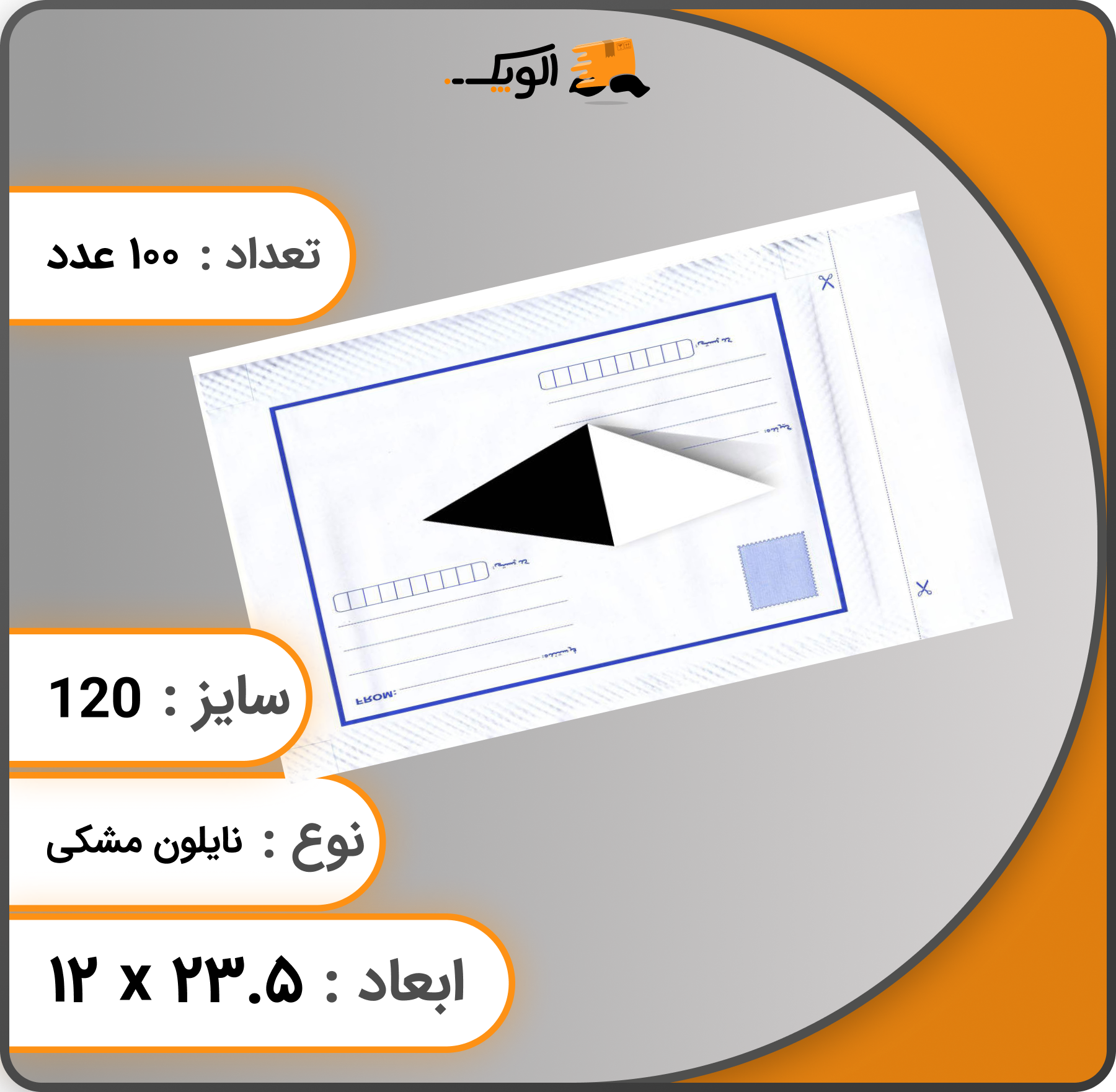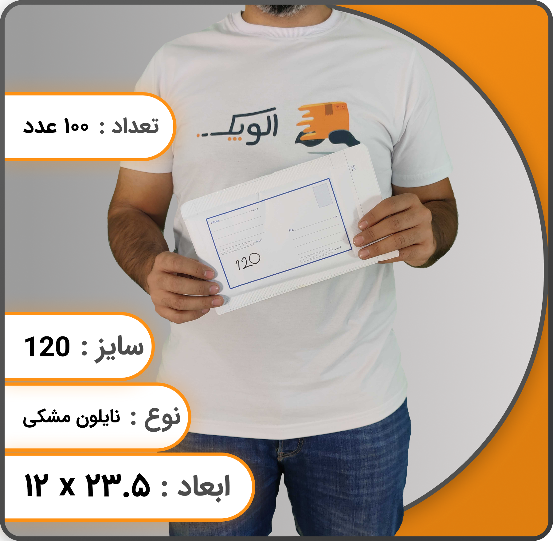 پاکت نایلون مشکی 120 با ابعاد 23.5 × 12 سانتیمتر، برای ارسال اسناد و نامههای کاغذی طراحی شده است. این اندازه برای اکثر اسناد استاندارد مناسب است.