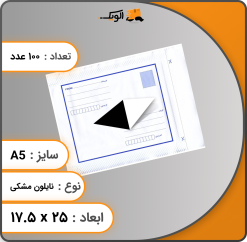 پاکت پستی نایلون مشکی 120 آدرس دار از دو لایه رویی کاغذ تحریر 80 گرم و 100 گرم لایه داخلی نایلون مشکی با کیفیت و از جنس مرغوب، سخت و بادوام ساخته شده است.